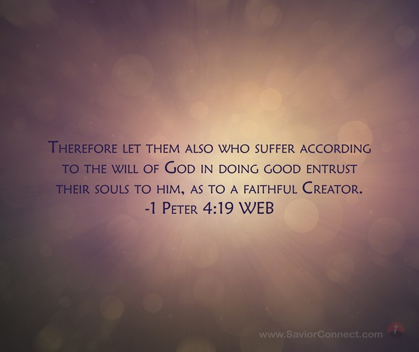 1 Peter 4 19 So If You Are Suffering In A Manner That Pleases God Keep On Doing What Is Right And Trust Your Lives To The God Who Created You For He